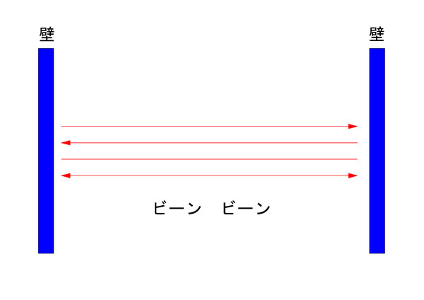 主に壁や床と天井などの並行面で音が繰り返し反射することで起こる現象で、日光東照宮の「鳴き竜」が有名です。ビーンと濁り比較的高音で発生する。
