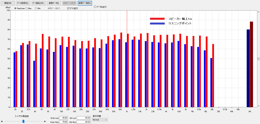 実際のスピーカーの特性とリスニングポイントでの変化の確認を行います。