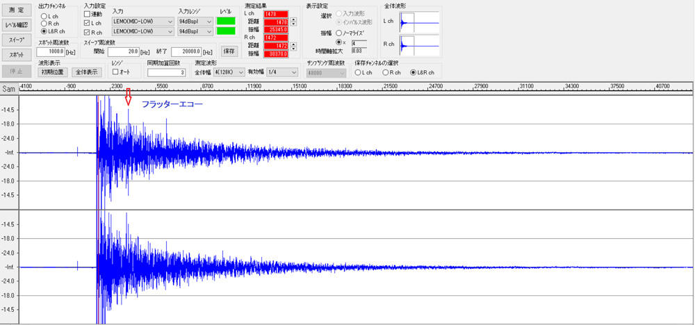 音響障害フラッターの確認、減衰傾向の確認を行います。