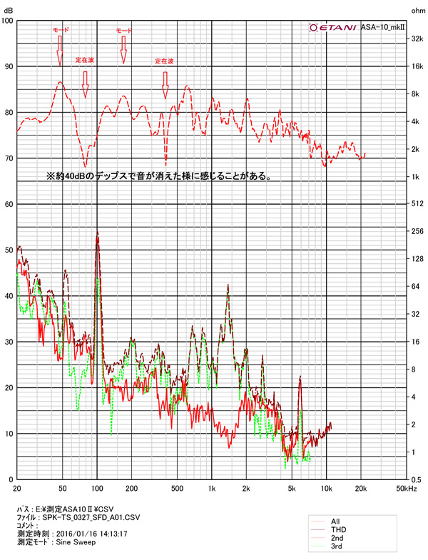 5.スイープ音測定( モードによる変化や部屋の定在波把握も可能、歪率測定 )