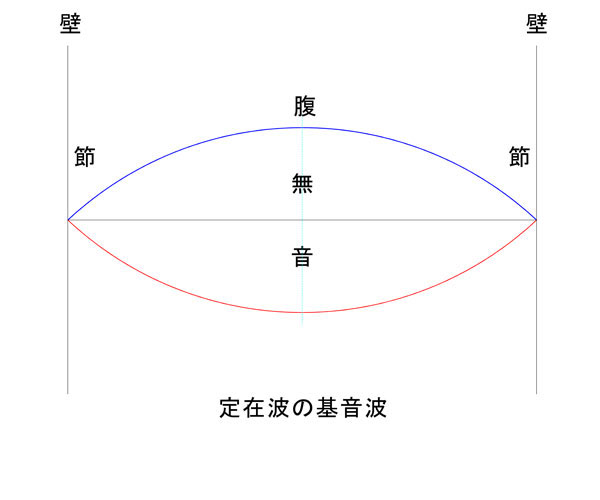 進行する音波と反射して帰ってくる音波が重なりあって進行していないように見える現象を定在波と言う。