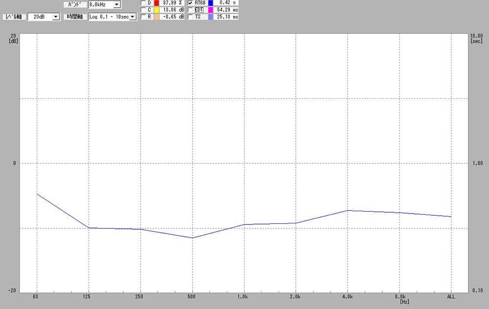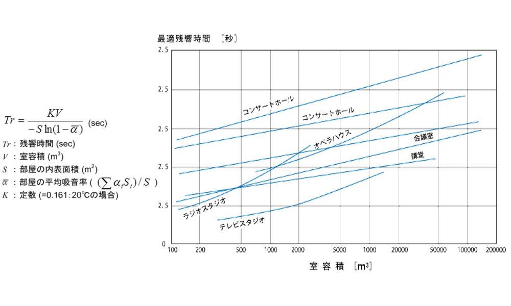 残響時間は、その空間の床・壁・天井の素材や容積によって変化します。オーデイオルームや音楽室などや楽器の種類よって適正な残響の設定が重要です。